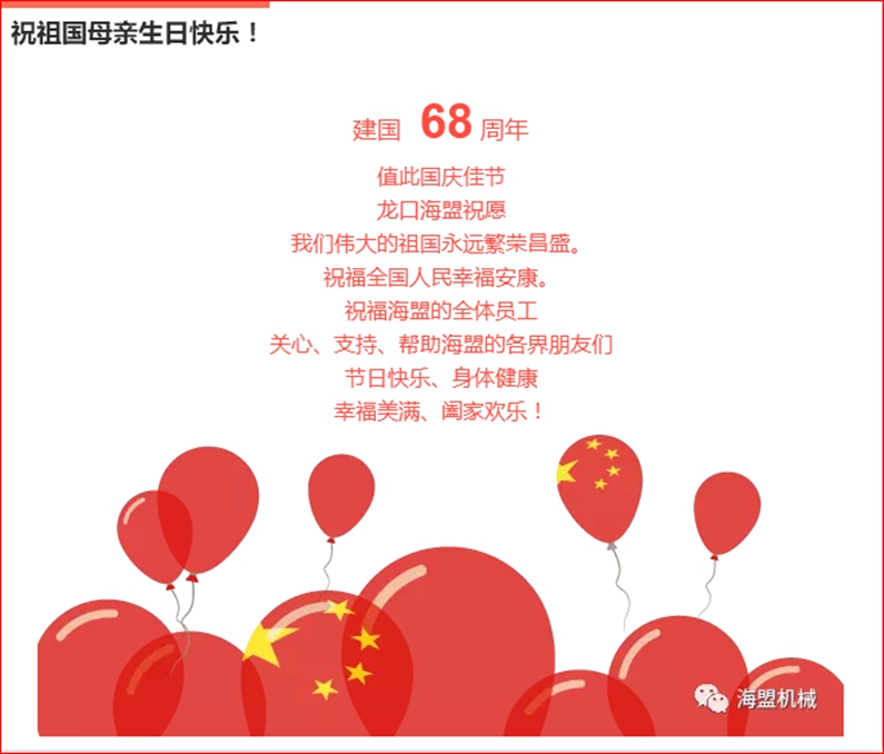 海盟祝祖國母親生日快樂,祝大家國慶節(jié)快樂!